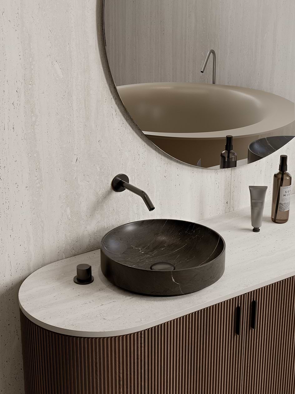Travertine Porcelain Slabs capture the elegance of natural travertine stone in stunning white and beige hues, meticulously crafted in Italy. Available in both polished and structured finishes, these slabs are perfect for countertops, floors, and wall installations. The polished finish offers a sleek, reflective surface that brightens any space, while the structured finish adds a textured, tactile dimension. Combining the classic beauty of travertine with the superior durability of porcelain, these slabs are ideal for high-traffic areas. Elevate your interiors with the versatile and luxurious appeal of Travertine Porcelain Slabs, designed to enhance any room with timeless Italian sophistication.